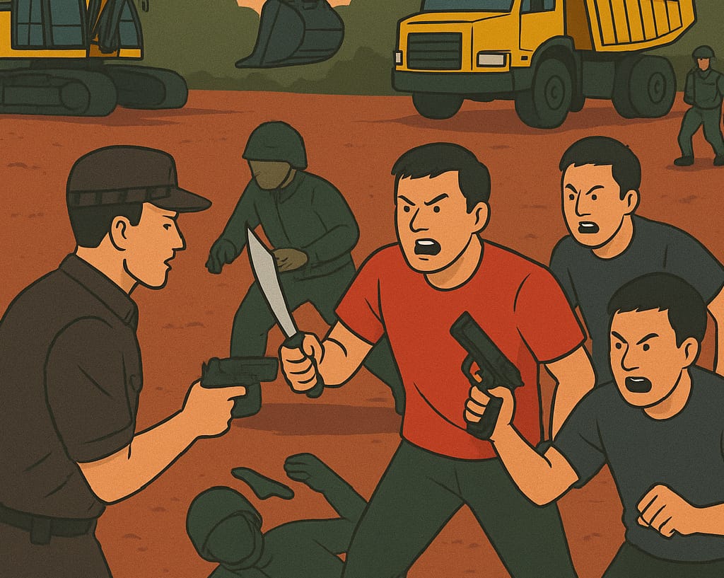KETAPANG – Sebanyak 15 Warga Negara Asing (WNA) asal China diduga membuat keributan hingga melakukan penyerangan di kawasan perusahaan pertambangan emas PT Sultan Rafli Mandiri (PT SRM), Kabupaten Ketapang, Kalimantan Barat. Insiden tersebut menyebabkan lima anggota TNI diserang dan dua kendaraan perusahaan mengalami kerusakan.