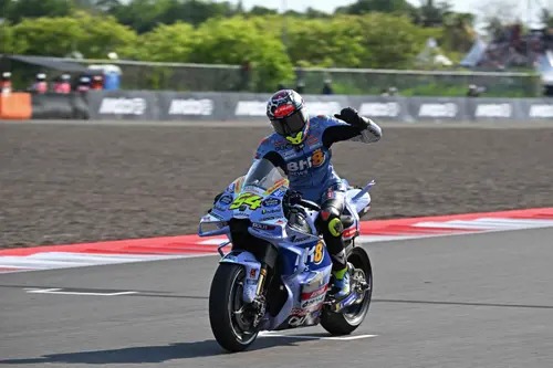 MANDALIKA – Pembalap BK8 Gresini Racing, Fermin Aldeguer, sukses merebut kemenangan dengan keunggulan 6,987 detik dalam balapan MotoGP Indonesia 2025 di Sirkuit Mandalika, Lombok, Minggu (5/10/25).