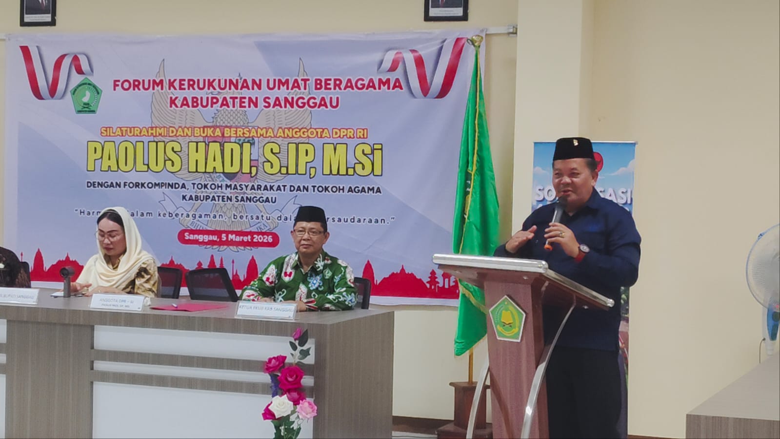 SANGGAU – Forum Kerukunan Umat Beragama (FKUB) Kabupaten Sanggau menggelar buka puasa bersama (bukber) Anggota DPR RI Paolus Hadi dan sejumlah tokoh masyarakat Sanggau bertempat di aula Kementerian Haji dan Umroh, Kamis (5/3/2026).