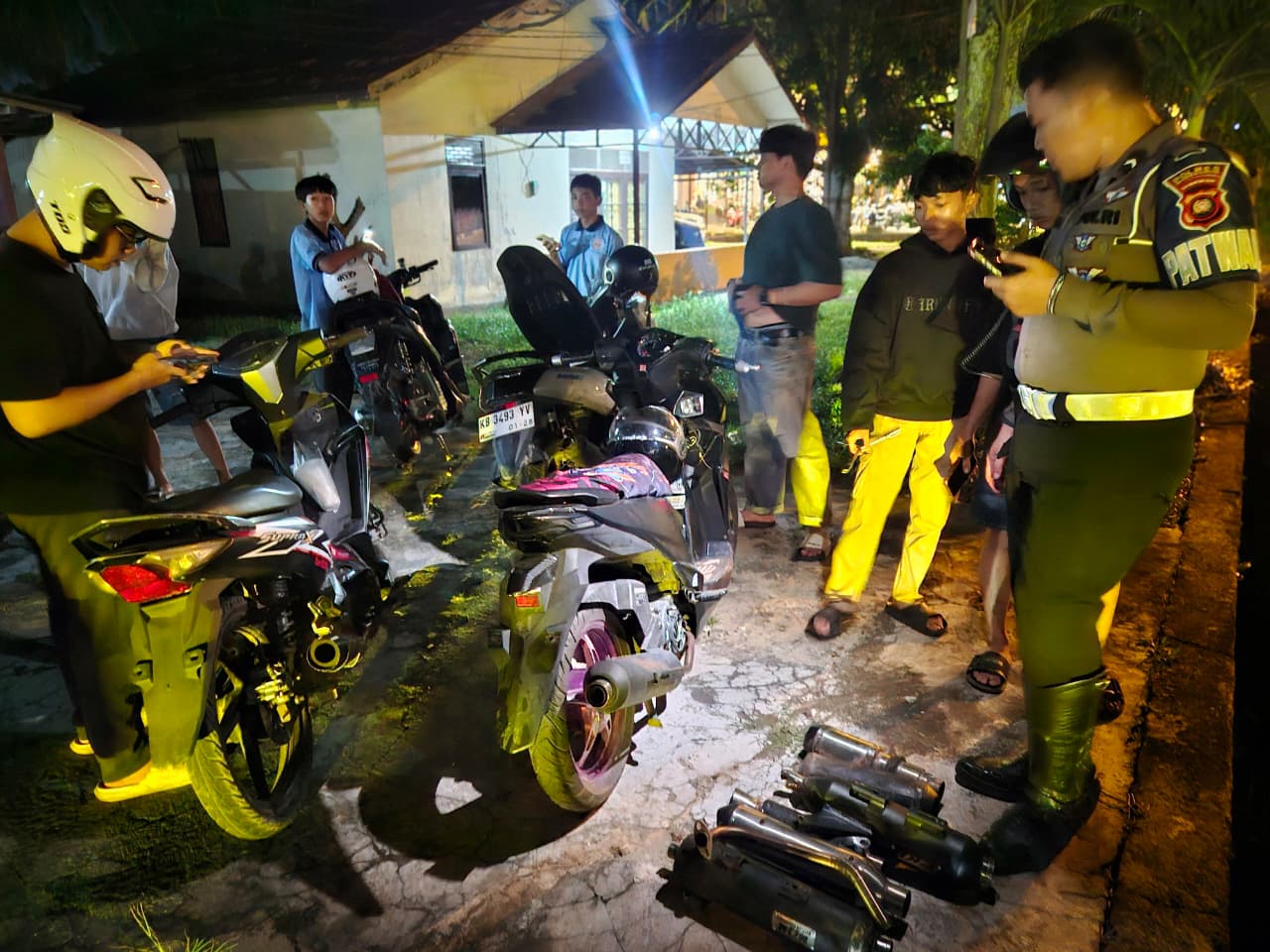 Dalam operasi tersebut, petugas berhasil mengamankan 19 unit knalpot brong dari sejumlah kendaraan roda dua.