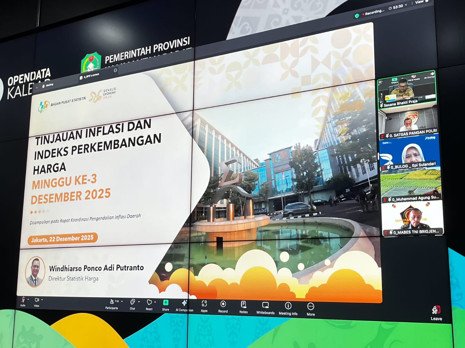 Menanggapi kondisi tersebut, Sekretaris Daerah Provinsi Kalimantan Barat, dr. Harisson, M.Kes., menyatakan bahwa Pemerintah Provinsi Kalimantan Barat terus memperkuat koordinasi lintas sektor dalam rangka pengendalian inflasi daerah, terutama menjelang Natal dan Tahun Baru.