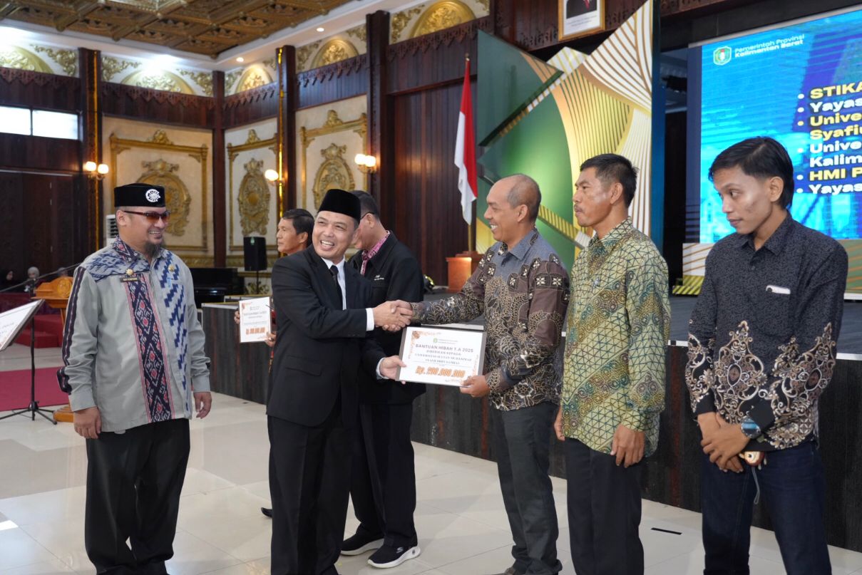 PONTIANAK – Gubernur Kalimantan Barat, Ria Norsan resmi melantik Dewan Pendidikan Provinsi Kalbar Masa Bakti 2025-2030 di Pendopo Gubernur, Kamis (20/11/2025). Acara ini serangkaian dengan penyerahan hibah ke lembaga pendidikan, beasiswa non-akademik bagi pelajar berprestasi, dan penandatanganan komitmen bersama dengan perguruan tinggi se-Kalbar.