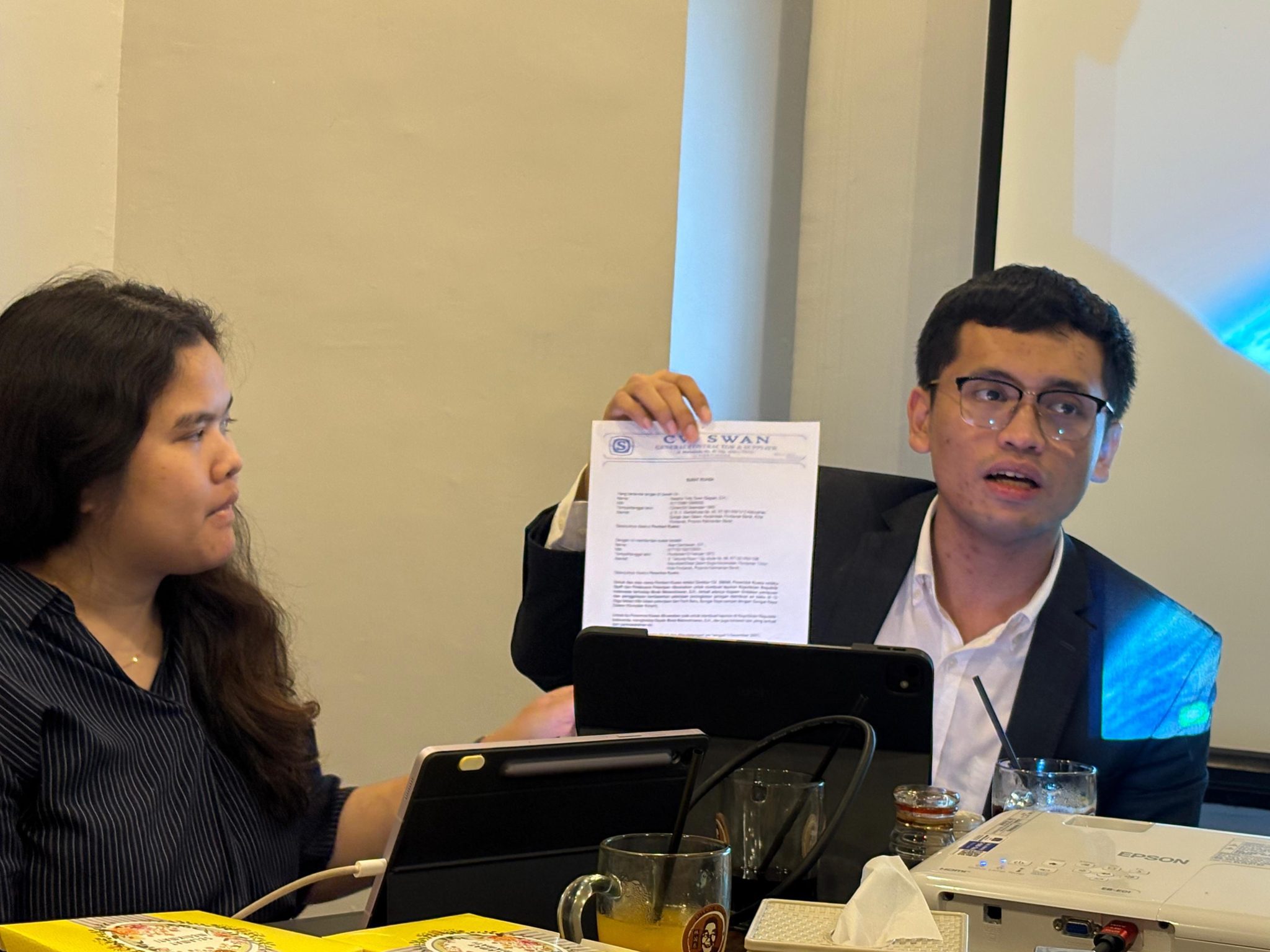 Zahid memaparkan bahwa laporan polisi dibuat atas nama CV Swan, dengan Iwan Darmawan bertindak sebagai pelapor berdasarkan surat kuasa. Iwan diketahui berperan sebagai penghubung proyek dan pengawas lapangan, berdasarkan MOU yang ditandatangani bersama Uray Wisata dan diketahui oleh Muda Mahendrawan.
