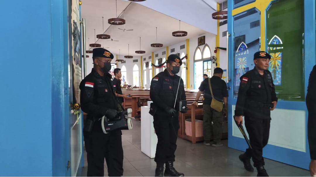 Sterilisasi lokasi ibadah melibatkan personel Brimob Polda Kalimantan Barat bersama jajaran Polresta Pontianak. Petugas menyisir sejumlah titik vital, mulai dari ruang utama gereja, altar, area parkir, hingga lingkungan sekitar rumah ibadah.