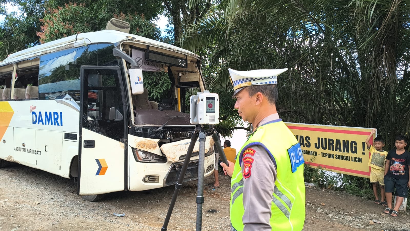 SANGGAU – Tim Satlantas Polres Sanggau dibantu tim Traffic Accident Analysis (TAA) Ditlantas Polda Kalbar, Dinas Perhubungan Sanggau, Jasa Raharja dan perwakilan Managemen Bus Damri melakukan olah tempat kejadian perkara (TKP) kecelakaan lalu lintas yang dialami Bus Damri di turunan Desa Penyeladi Kecamatan Kapuas, Minggu (5/4/2026) siang.