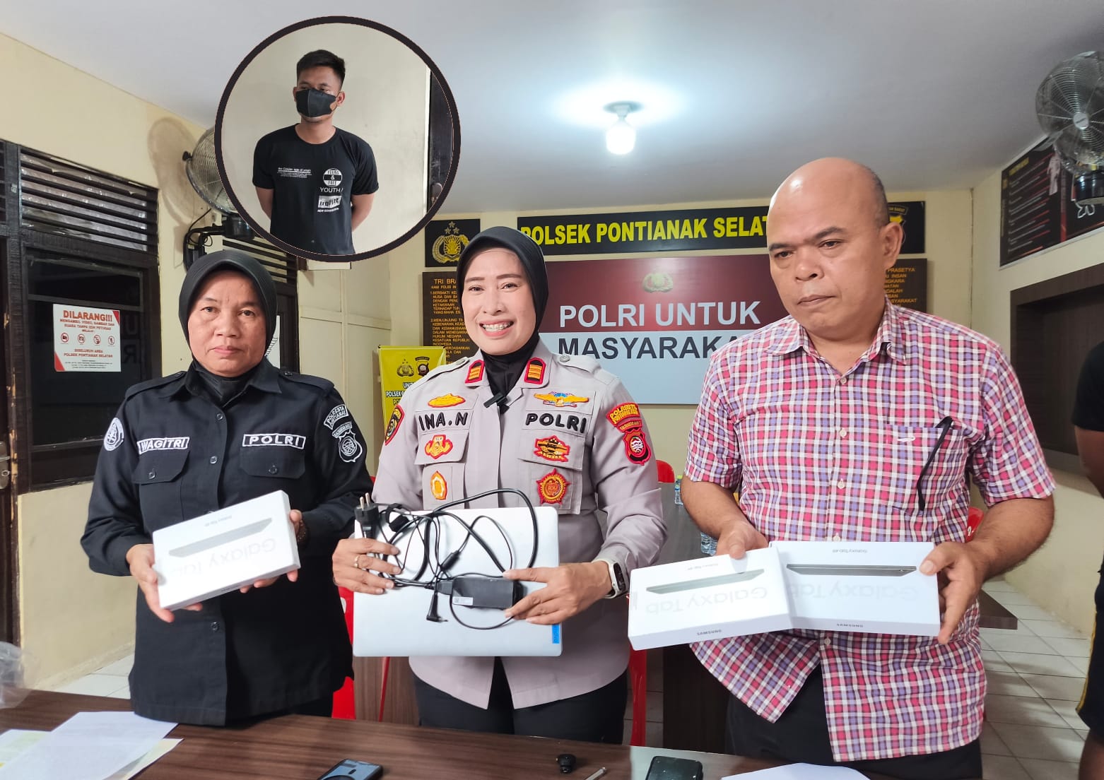 “Pelaku menjual tiga tablet dengan harga masing-masing Rp500 ribu. Penjualan dilakukan melalui pacarnya berinisial DN, yang turut membantu menawarkan barang curian tersebut kepada calon pembeli. Ada yang ditawarkan langsung di wilayah Beting dan ada pula yang dijual di sekitar GOR,” jelas Kapolsek.