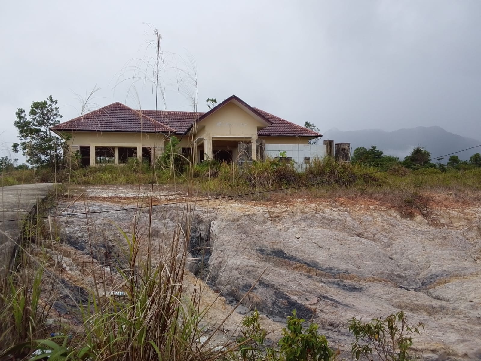 Dari pantauan di lokasi, kondisi bangunan tampak tidak terawat. Halaman dipenuhi semak belukar dan rumput liar yang tumbuh tinggi, sementara beberapa bagian bangunan terlihat mulai mengalami kerusakan.