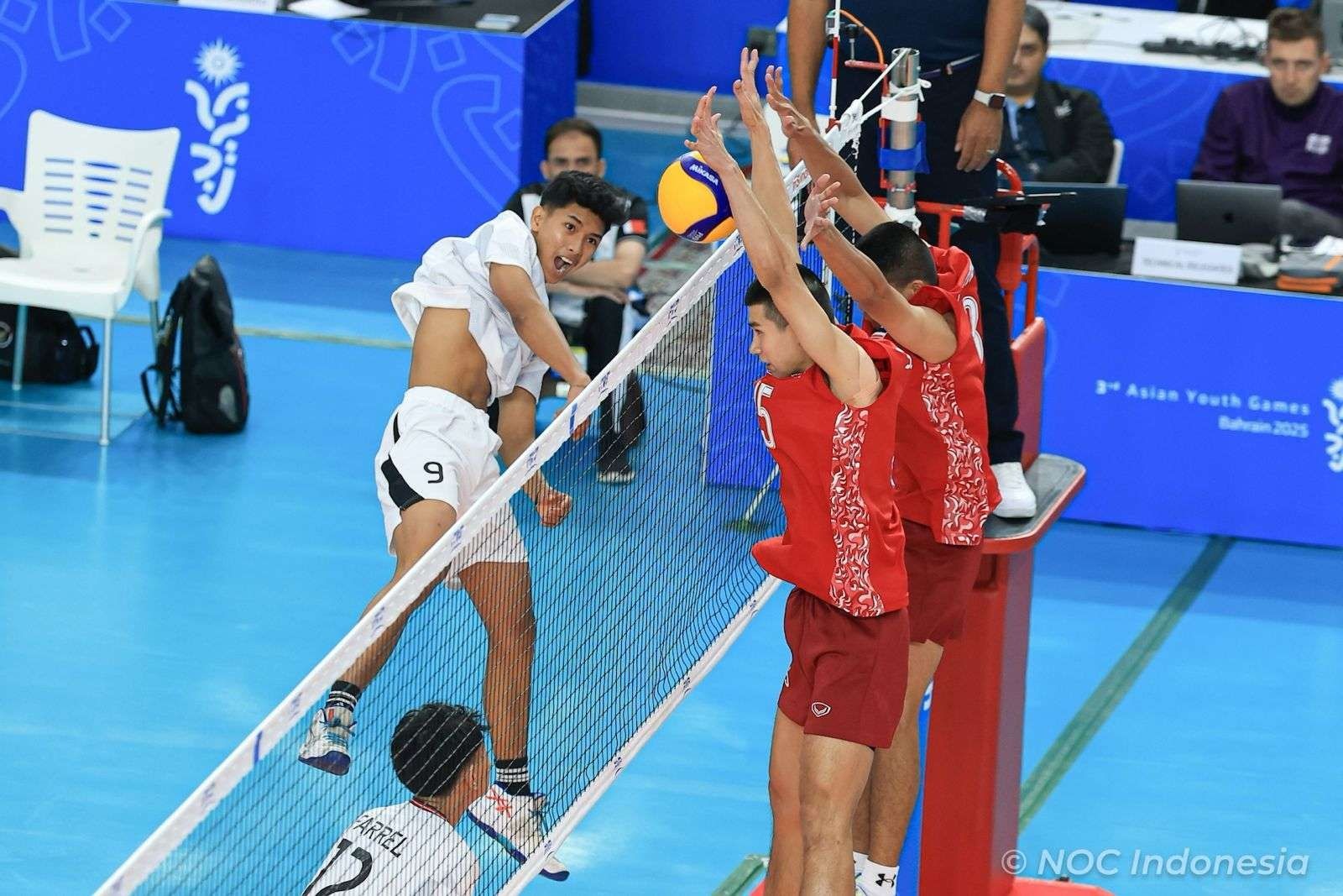 JAKARTA – Tim Voli Putra Indonesia kalahkan Thailand dalam babak penyisihan pool D Asian Youth Games Bahrain 2025 di Hall C, ISA Sports City, Raffa. Indonesia menang 3-1, Senin (20/10/25).